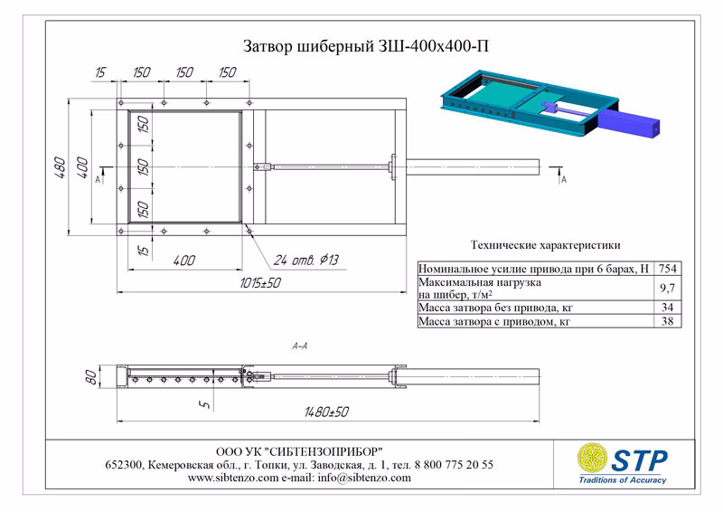 Затвор шиберный 3Ш-400х400-П выполняет функцию регулирования либо полной блокировки потока веществ. Отличительной особенностью устройства является использование металлического ножа (пластины) в качестве запорного элемента.