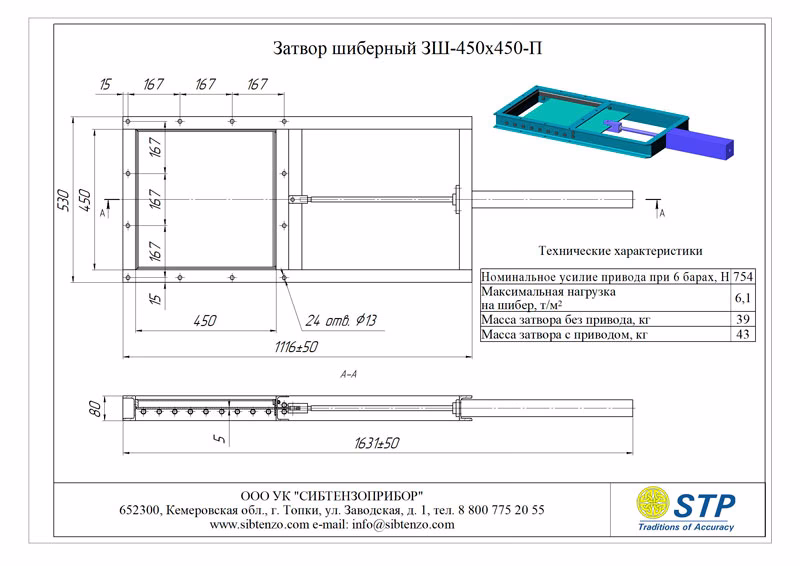 Наименование Габариты проходного окна шибера, мм Состав затвора шиберного ЗШ Масса Максимальная нагрузка на шибер, т/м2